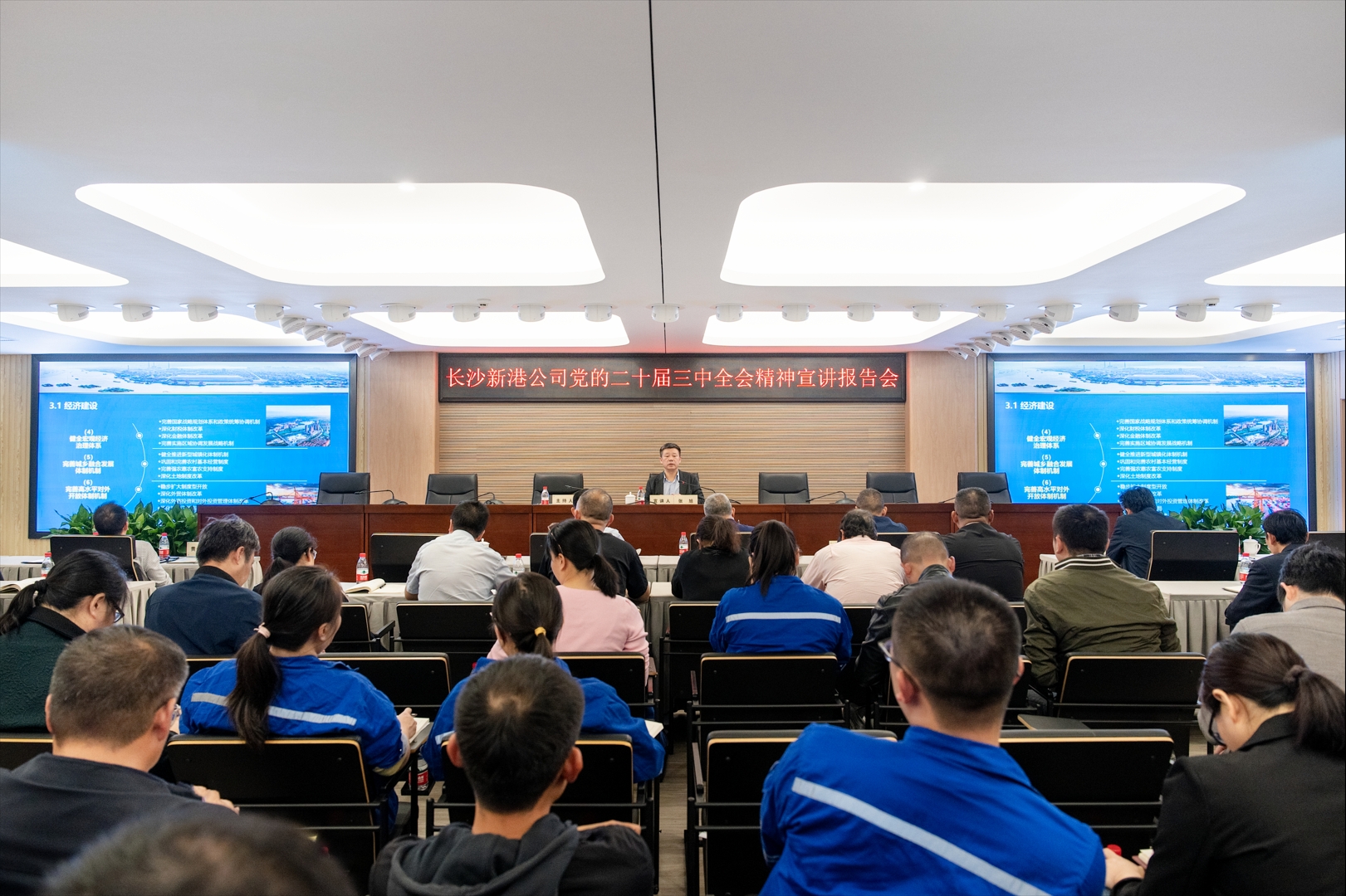 11月14日,省港航水利集團(tuán)黨委委員、副總經(jīng)理,省城陵磯港口集團(tuán)黨委書(shū)記、董事長(zhǎng)張旭向長(zhǎng)沙新港公司全體黨員干部宣講黨的二十屆三中全會(huì)精神。 張旭結(jié)合思想工作實(shí)際,從正確認(rèn)識(shí)黨的二十屆三中全會(huì)召開(kāi)的時(shí)代背景、深刻理解全面深化改革的重大意義和總體要求、準(zhǔn)確把握進(jìn)一步全面深化改革的戰(zhàn)略部署、深入學(xué)習(xí)貫徹全會(huì)精神中推動(dòng)集團(tuán)高質(zhì)量發(fā)展等四個(gè)方面,向長(zhǎng)沙新港全體黨員干部開(kāi)展宣講,分享學(xué)習(xí)體會(huì)。他指出,全體黨員干部要切實(shí)把思想和行動(dòng)統(tǒng)一到黨中央精神上來(lái),深刻理解全會(huì)精神的核心要義、豐富內(nèi)涵和實(shí)踐要求,牢牢把握進(jìn)一步全面深化改革、推進(jìn)中國(guó)式現(xiàn)代化的重點(diǎn)任務(wù),以釘釘子精神抓好改革任務(wù)落實(shí)。 張旭強(qiáng)調(diào),各級(jí)黨組織要把學(xué)習(xí)貫徹黨的二十屆三中全會(huì)精神,與做好當(dāng)前重點(diǎn)工作結(jié)合起來(lái),精心組織、周密安排、狠抓落實(shí),確保全會(huì)的決策部署在集團(tuán)各生產(chǎn)單位、各港口碼頭落地生根、開(kāi)花結(jié)果。要開(kāi)展專(zhuān)題學(xué)習(xí),扎實(shí)抓好學(xué)習(xí)宣貫工作,充分運(yùn)用湘水云課堂、國(guó)資E學(xué)、學(xué)習(xí)強(qiáng)國(guó)、紅星云等學(xué)習(xí)平臺(tái)完成線上學(xué)習(xí);要強(qiáng)化責(zé)任擔(dān)當(dāng),狠抓工作落實(shí),細(xì)化工作措施,沖刺最后兩個(gè)月,全面完成各項(xiàng)目標(biāo)任務(wù);要推動(dòng)港口創(chuàng)新發(fā)展、綠色發(fā)展、安全發(fā)展。要樹(shù)牢“一盤(pán)棋”思想,扛實(shí)“優(yōu)化交通運(yùn)輸結(jié)構(gòu)、降低社會(huì)綜合物流成本”的使命任務(wù);要加強(qiáng)對(duì)改革工作的監(jiān)督管理,建立改革督查檢查機(jī)制,進(jìn)一步優(yōu)化督辦體系,定期聯(lián)合開(kāi)展督查檢查,在發(fā)現(xiàn)問(wèn)題、解決問(wèn)題上下功夫,以實(shí)績(jī)實(shí)效和職工群眾滿(mǎn)意度檢驗(yàn)改革。 張旭要求,要準(zhǔn)確把握黨中央對(duì)當(dāng)前經(jīng)濟(jì)形勢(shì)的科學(xué)判斷和對(duì)下半年經(jīng)濟(jì)工作的重大部署,堅(jiān)定不移推進(jìn)全面深化改革,奮力開(kāi)創(chuàng)湖南港口事業(yè)高質(zhì)量發(fā)展新局面,為實(shí)現(xiàn)“三高四新”美好藍(lán)圖、全面建設(shè)社會(huì)主義現(xiàn)代化新湖南作出更大貢獻(xiàn)!  |